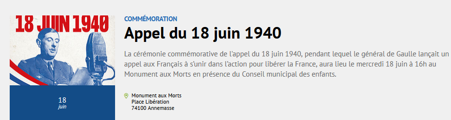 Dans diverses communes du département sera commémoré le 85ème anniversaire de l’appel à la résistance du général de Gaulle.