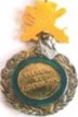 L’insigne est suspendu à un ruban jaune bordé de vert des deux côtés.