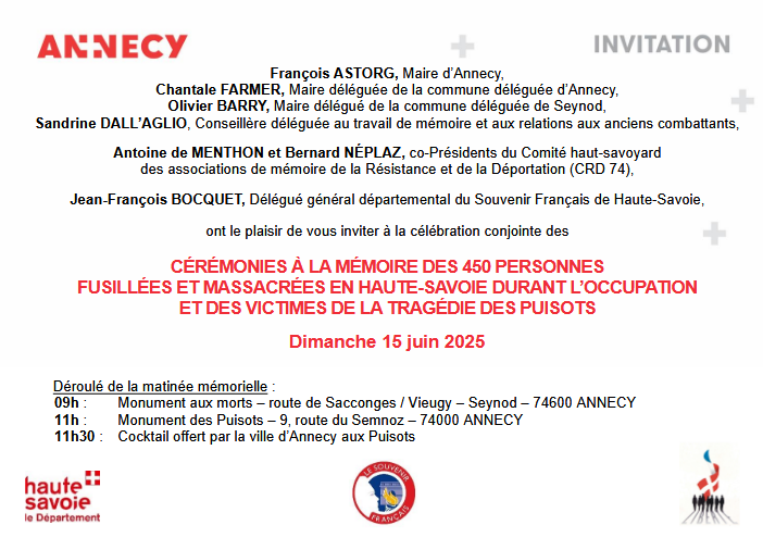 Dimanche 15 mars un hommage sera rendu aux 450 Fusillés et Massacrés de la Résistance suivi d’un hommage aux martyrs des Puisots.